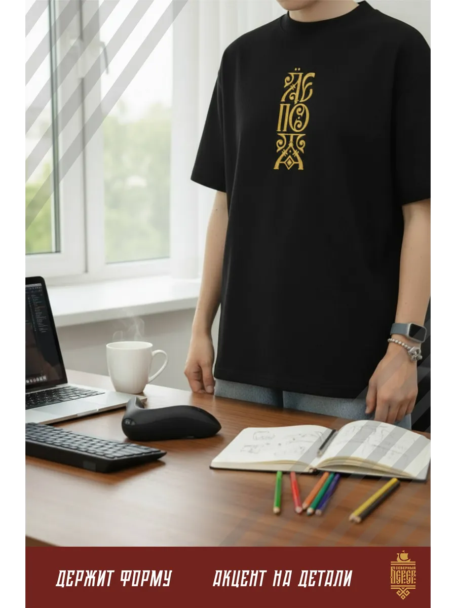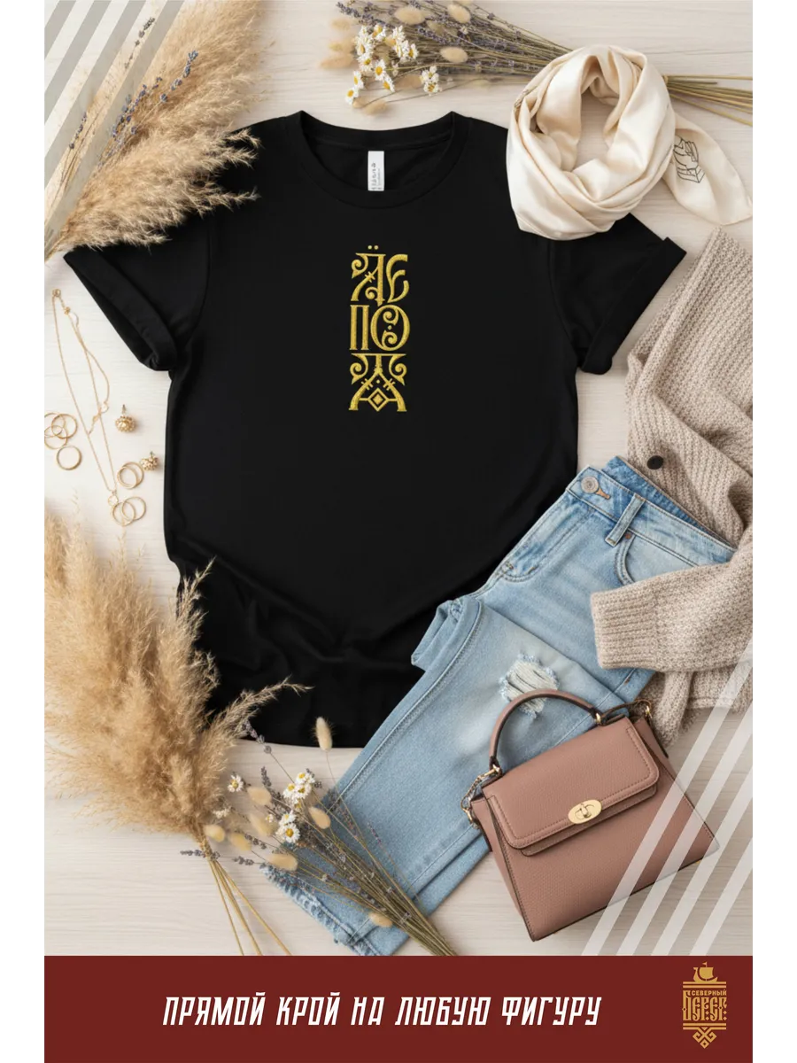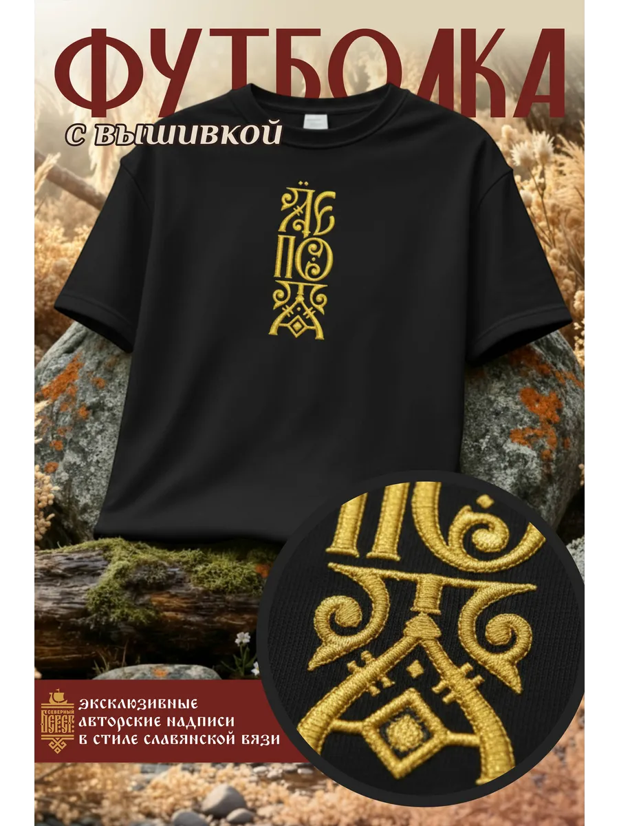 Футболка с вышивкой черная Лепота
