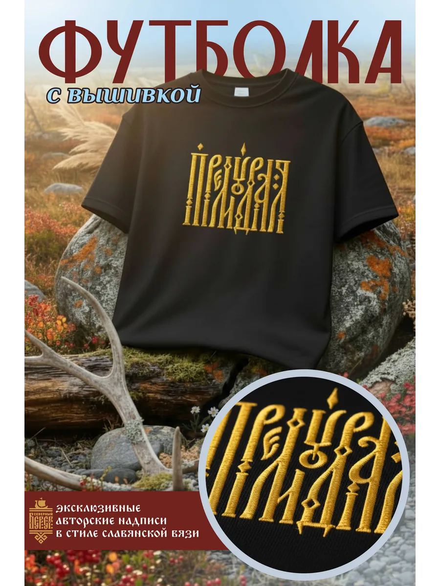 Футболка с вышивкой черная Премудрая