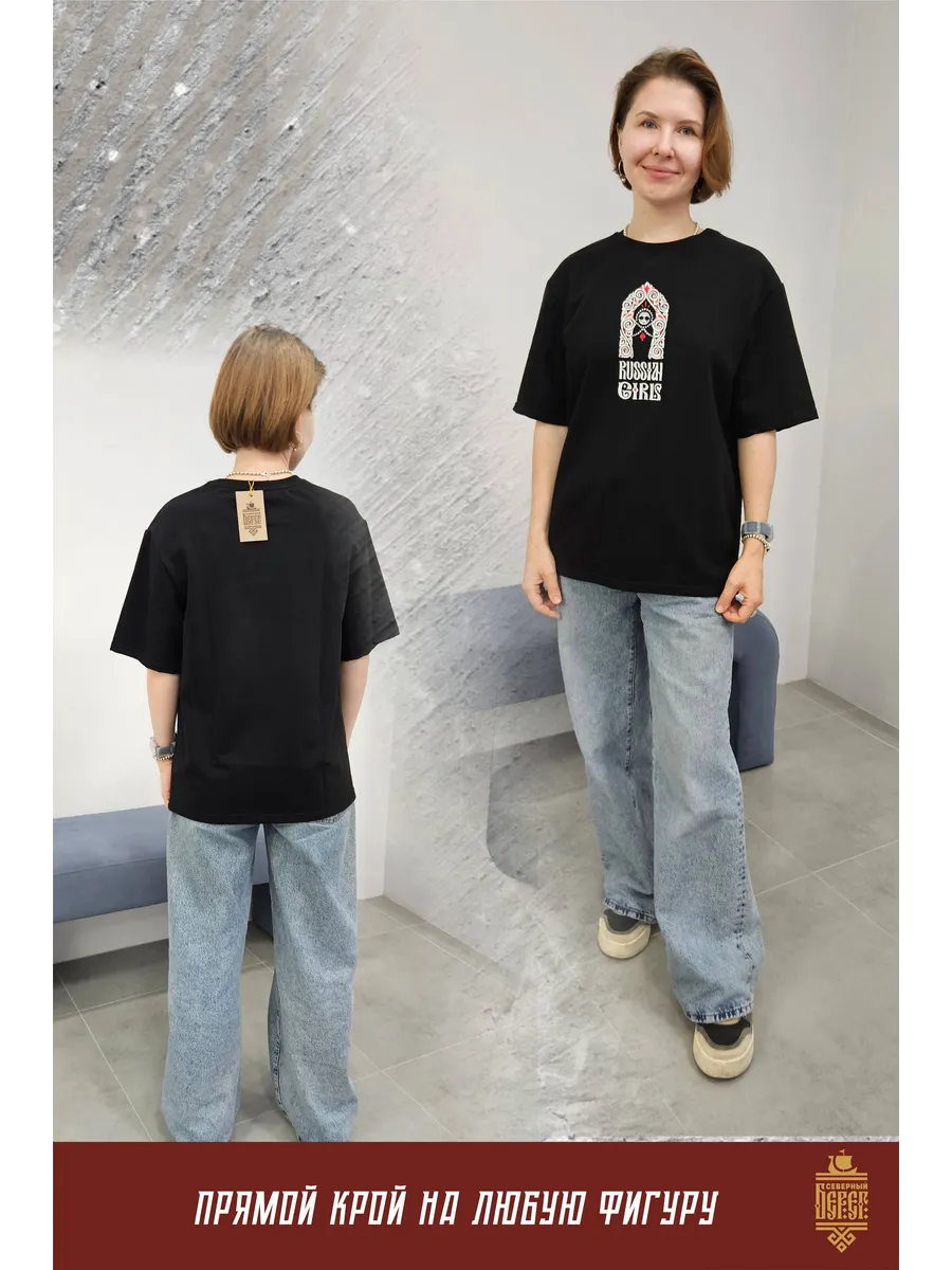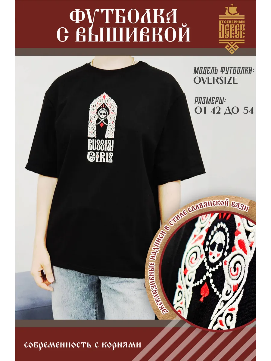 Футболка с вышивкой черная Russian Girl