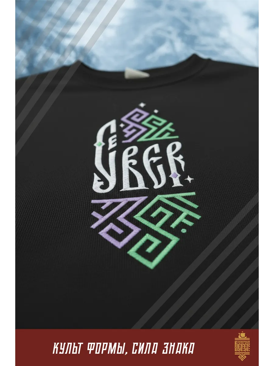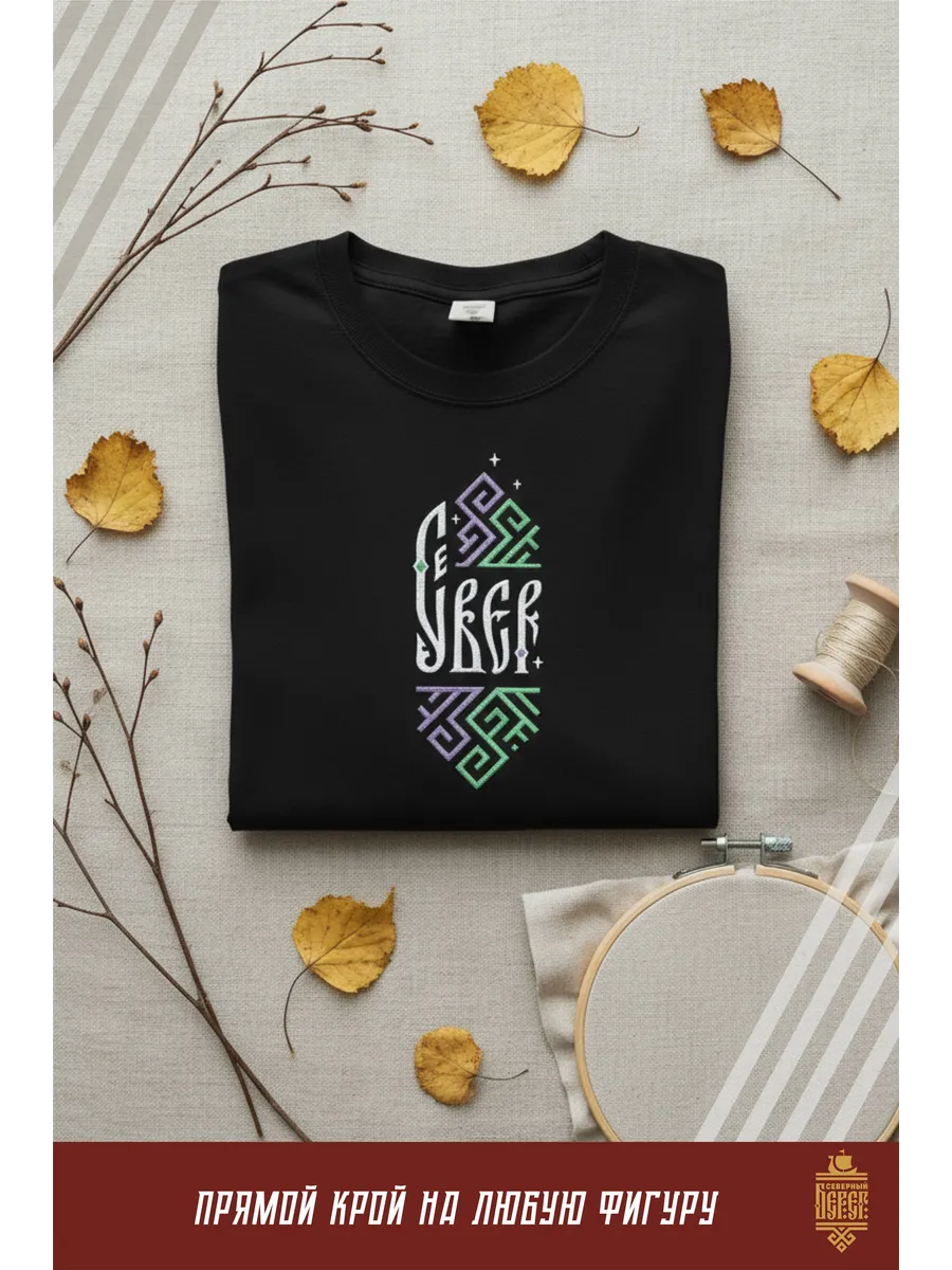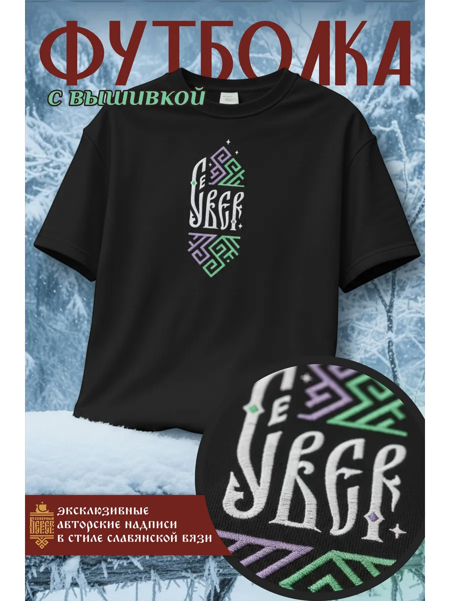Футболка с вышивкой черная Север Сияние