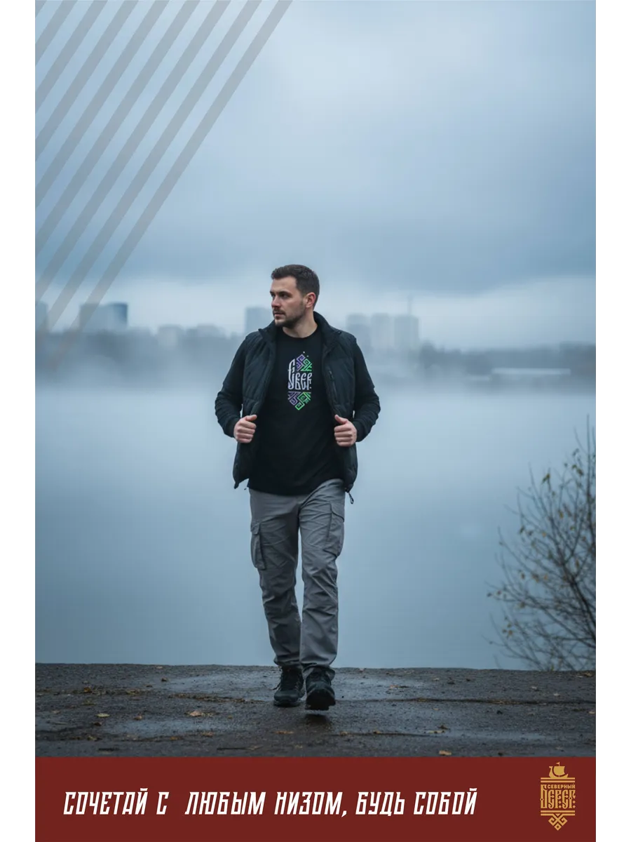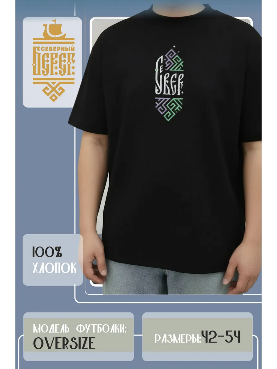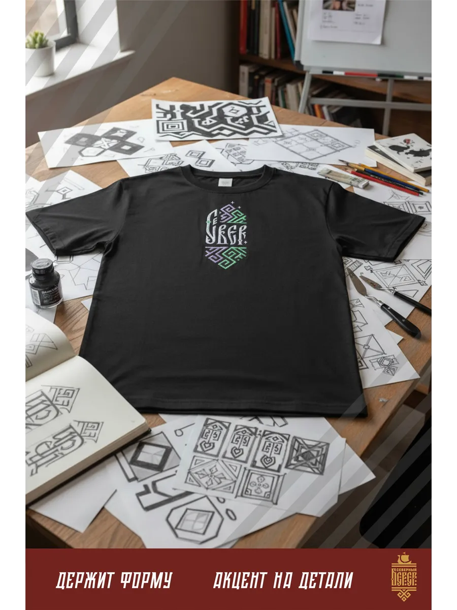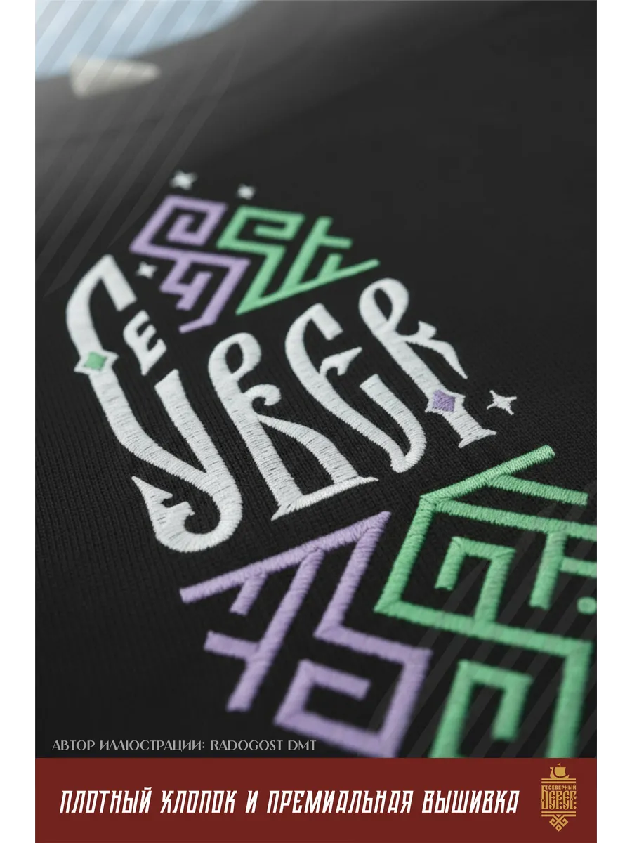 Футболка с вышивкой черная Север Сияние