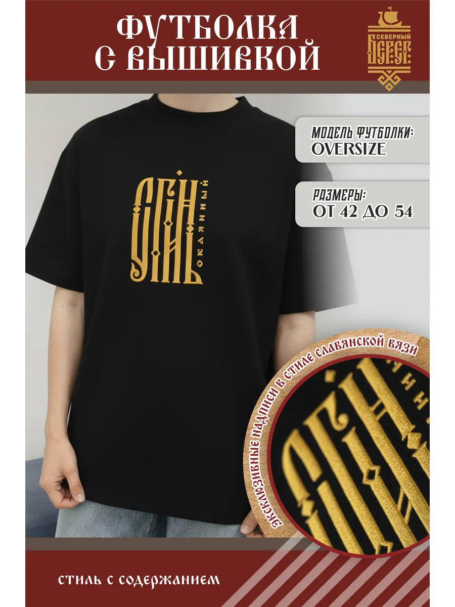 Футболка с вышивкой черная Сгинь