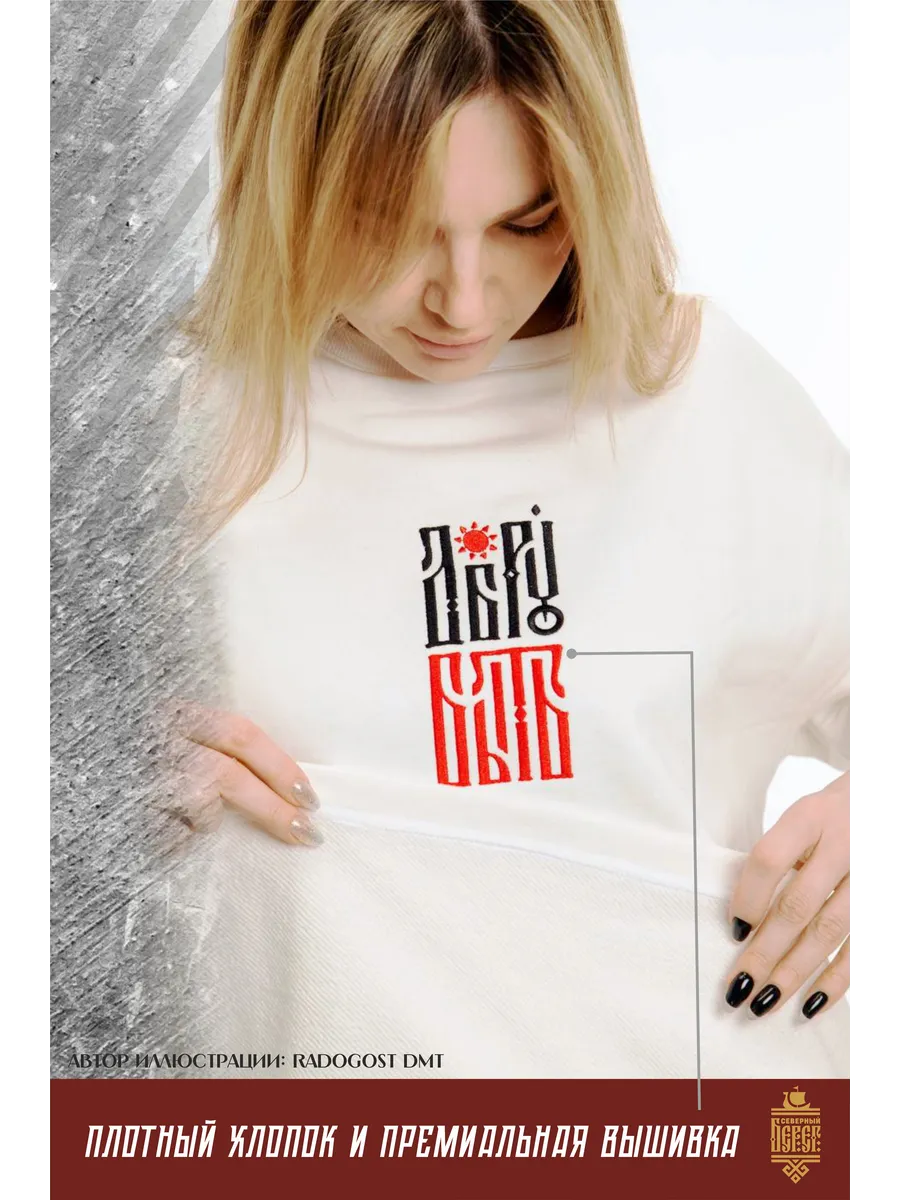 Футболка с вышивкой молочная Добру Быть