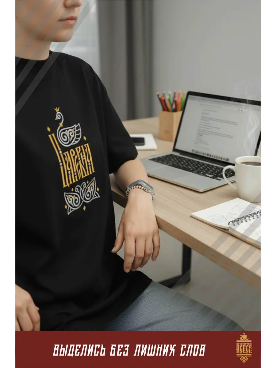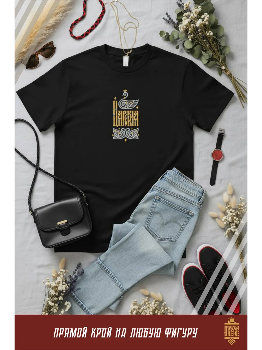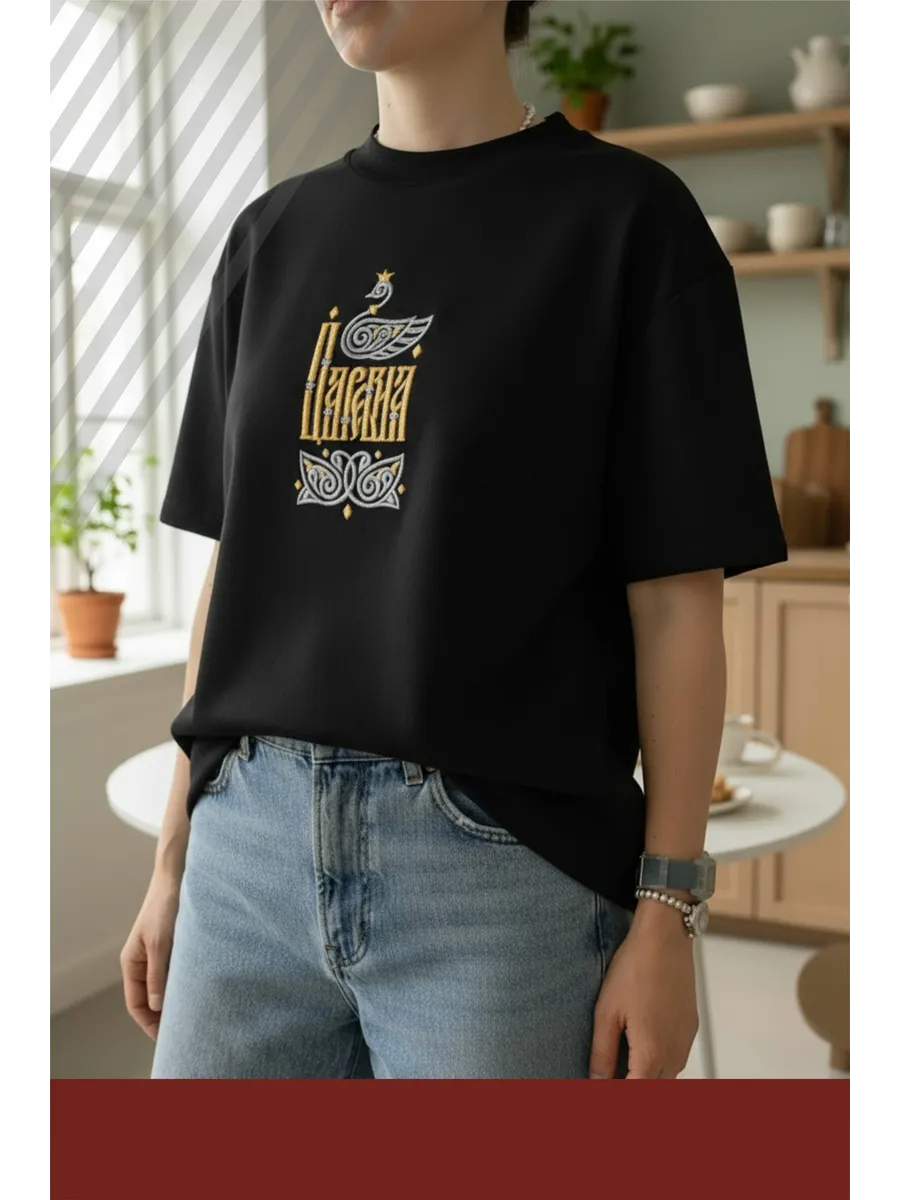 Футболка с вышивкой Царевна на черном