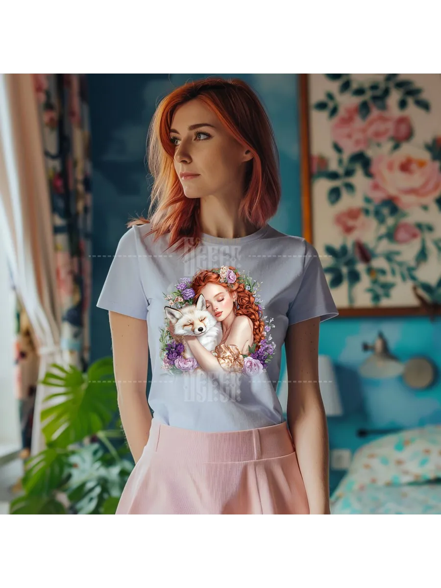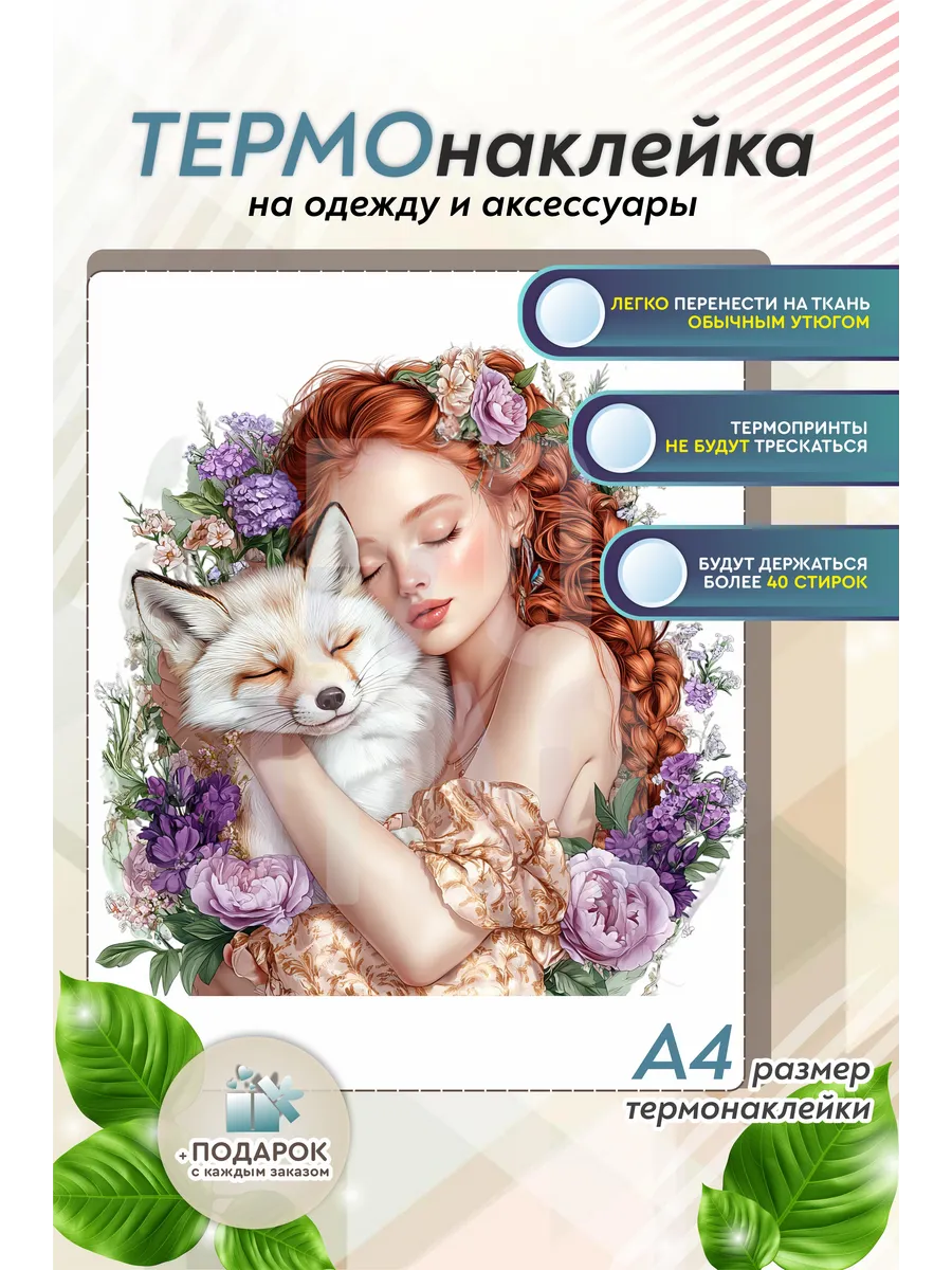 Термонаклейка на одежду, термопринт Девушка Лиса