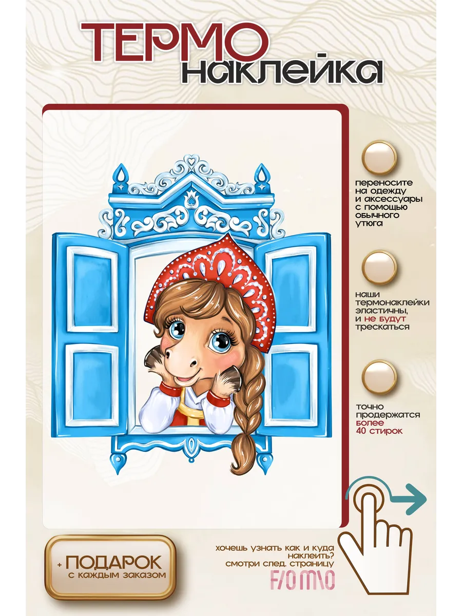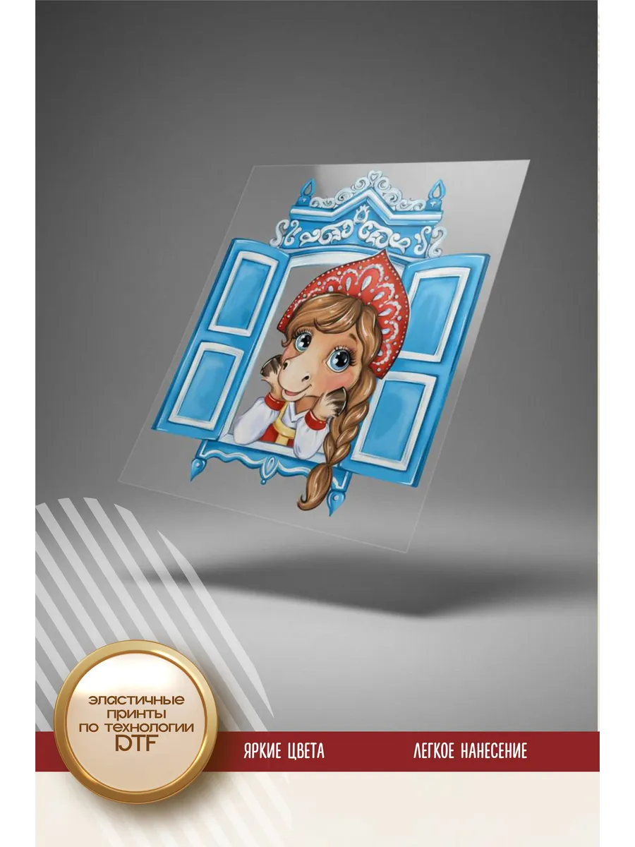 Термонаклейка на одежду, термопринт Окно Лошадка