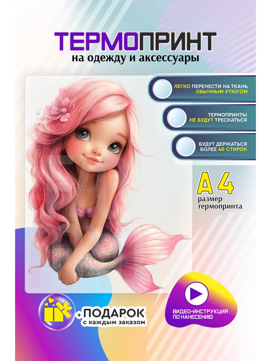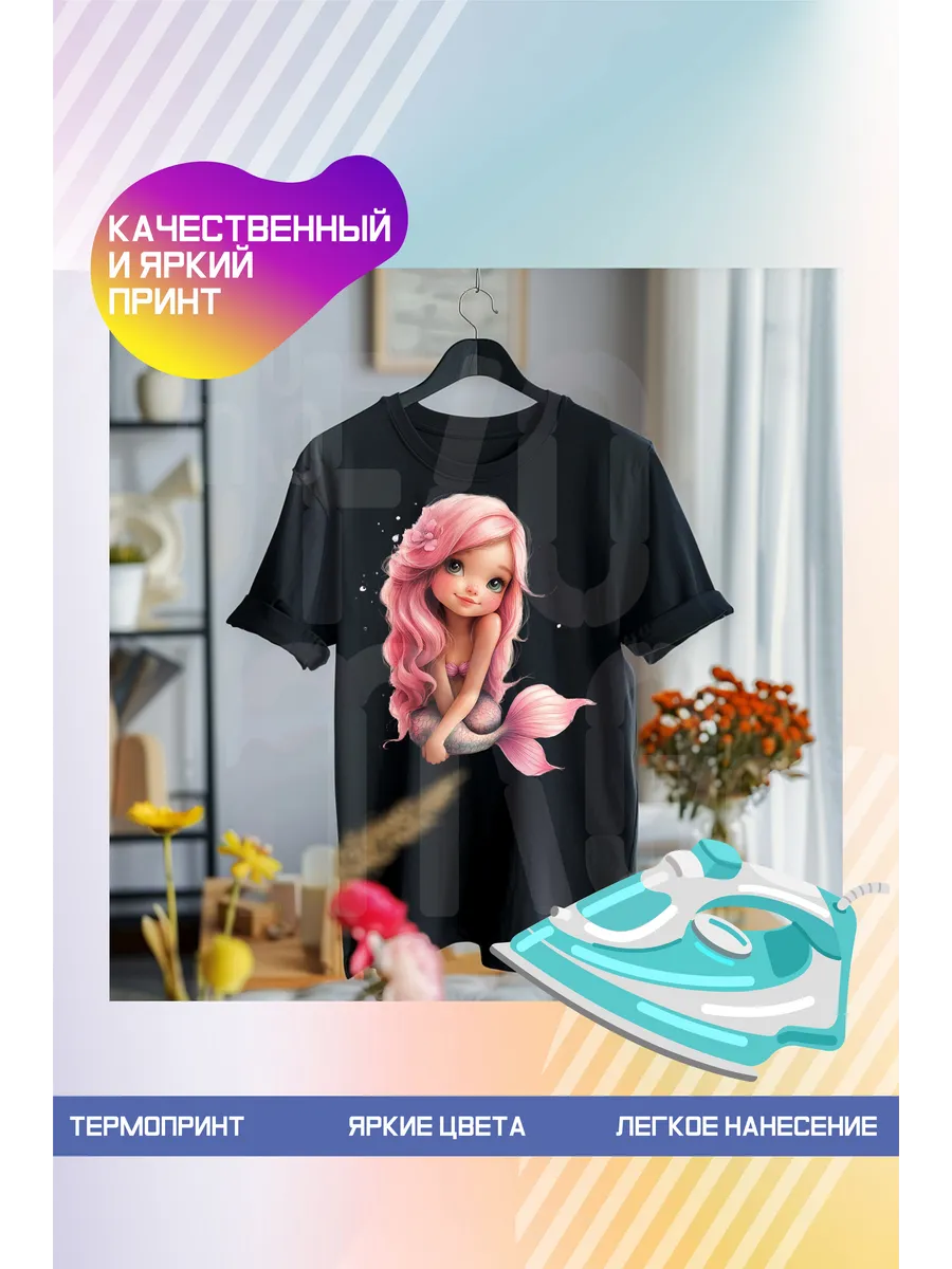 Термонаклейка на одежду, термопринт Русалка