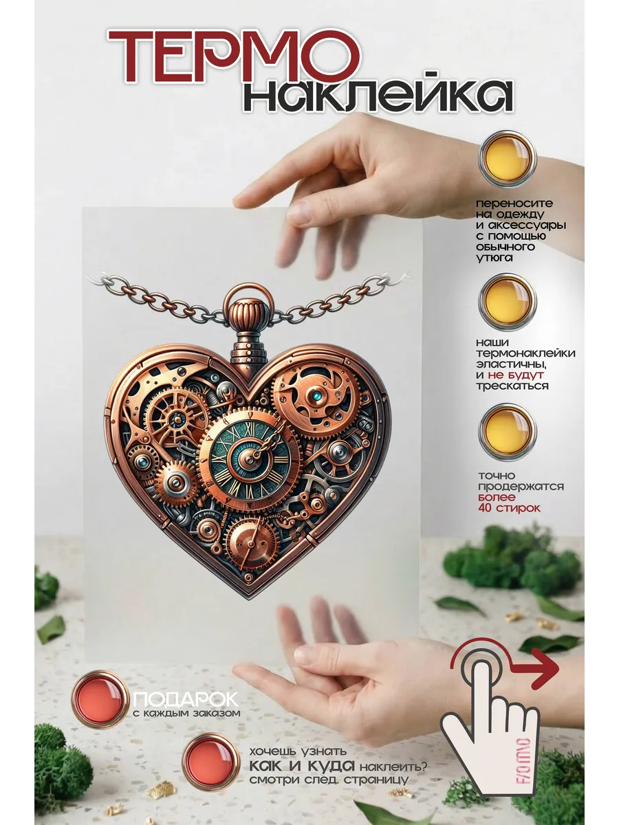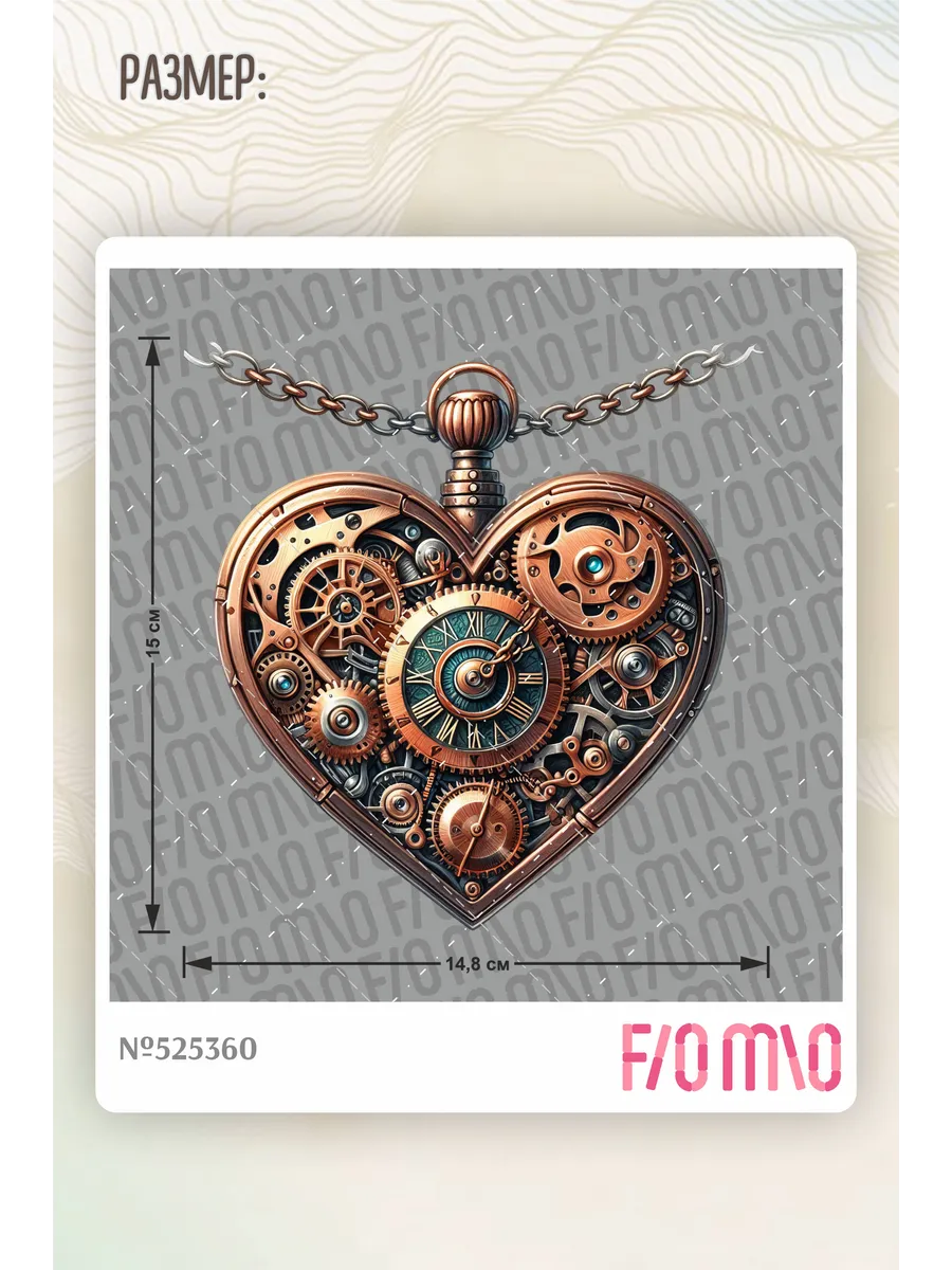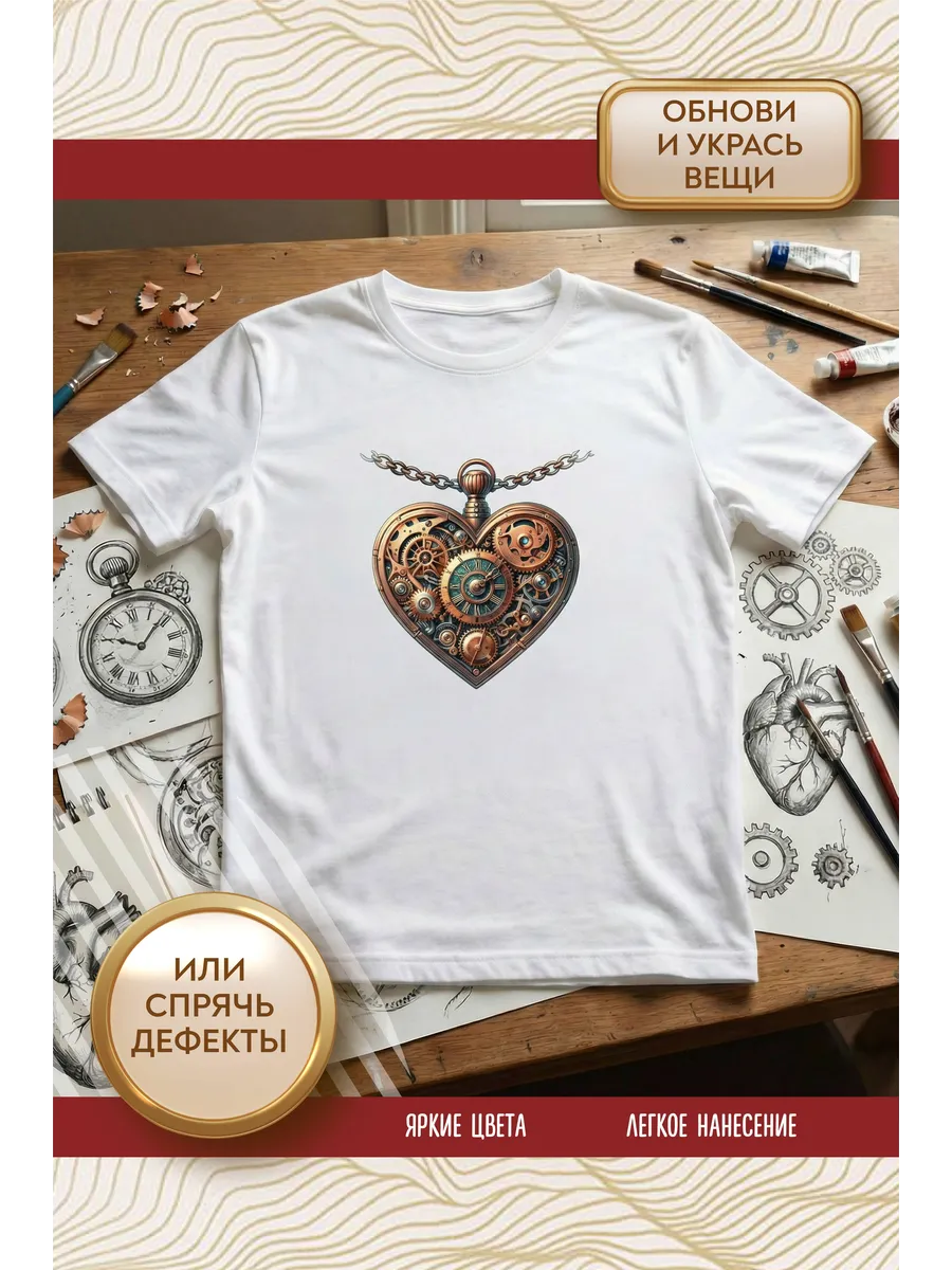 Термонаклейка на одежду, термопринт сердце стимпанк