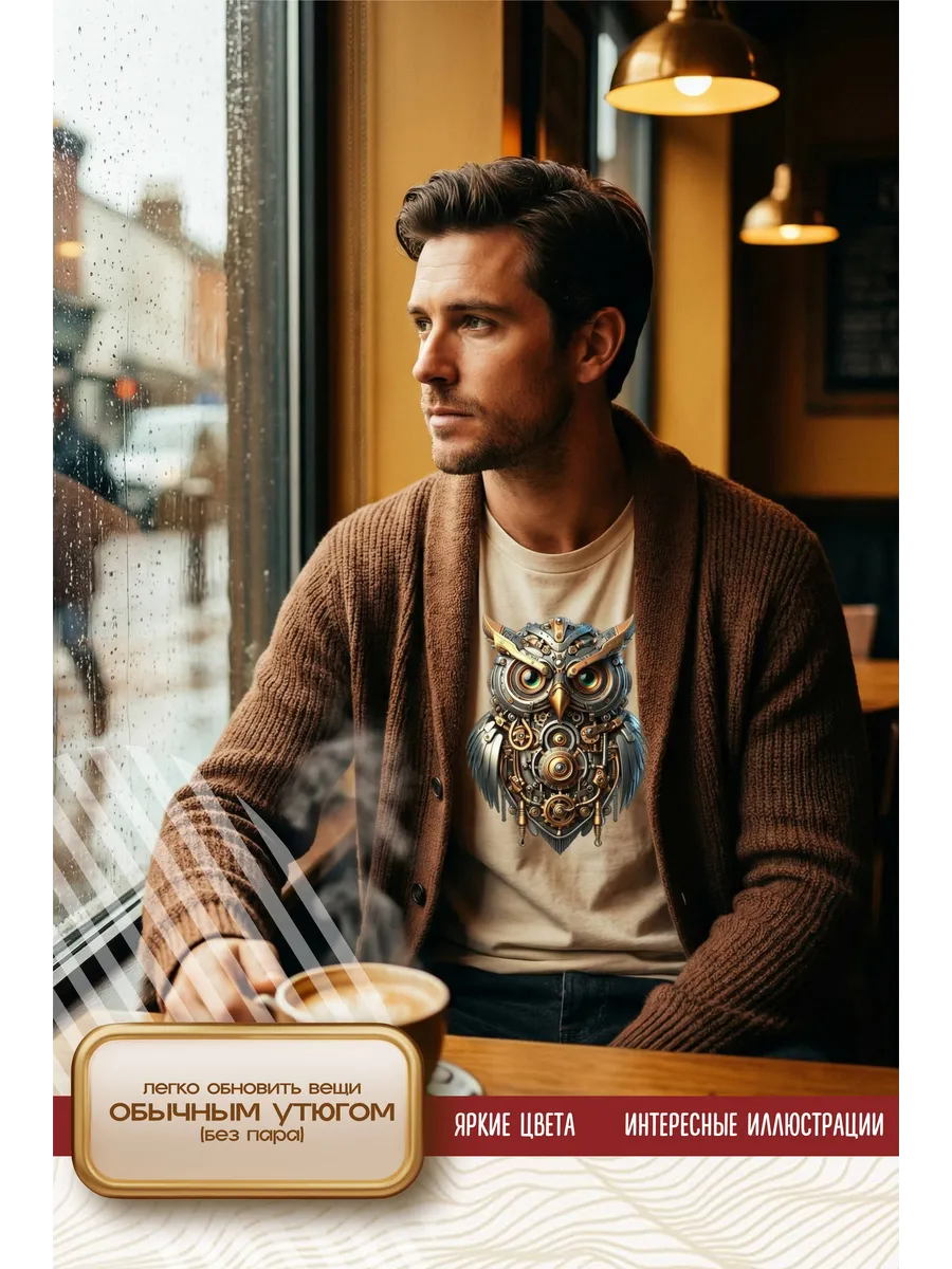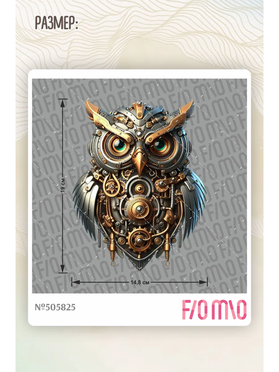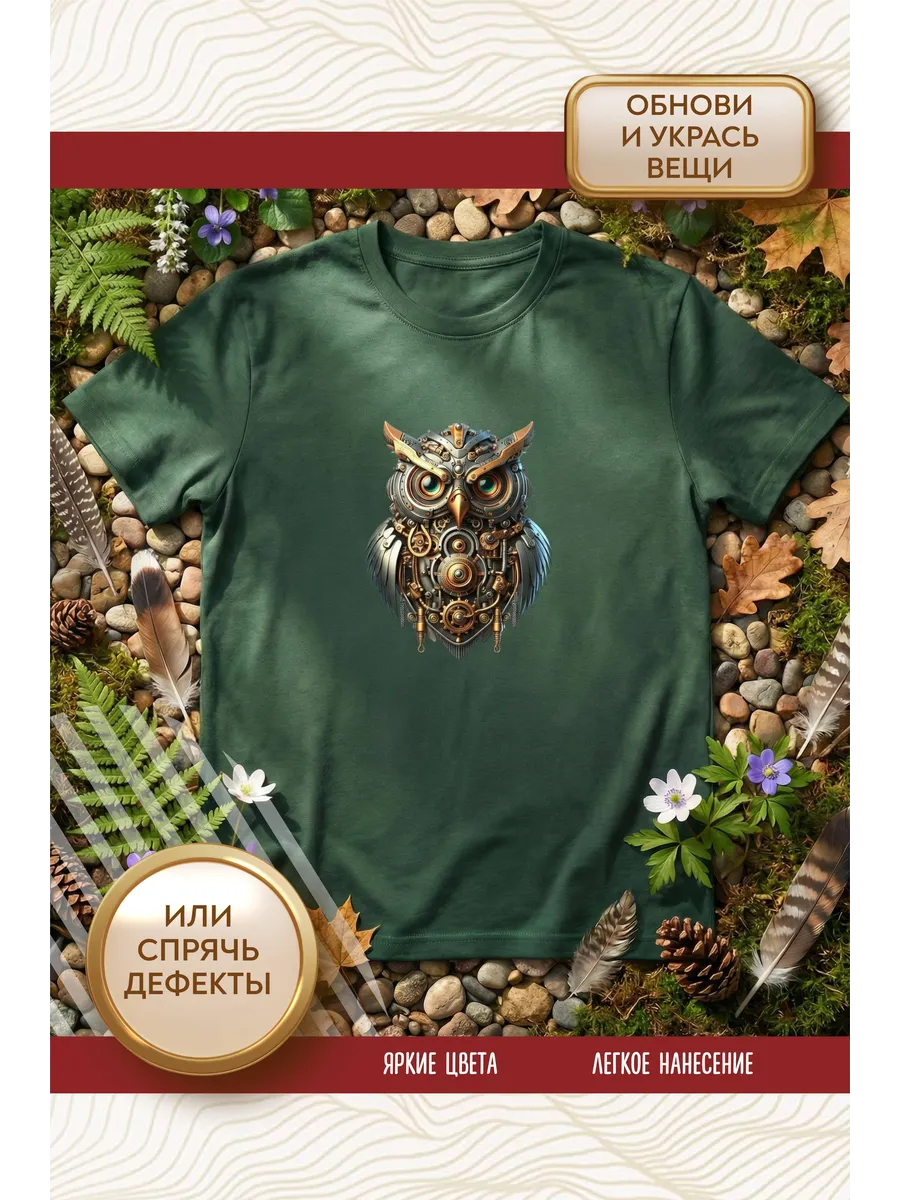 Термонаклейка на одежду, термопринт Сова стимпанк