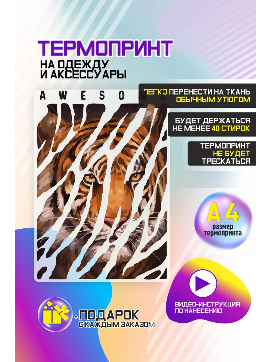 Термонаклейка на одежду, термопринт "Тигр"