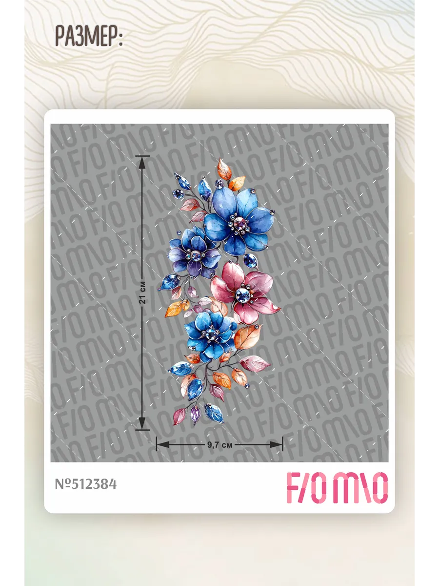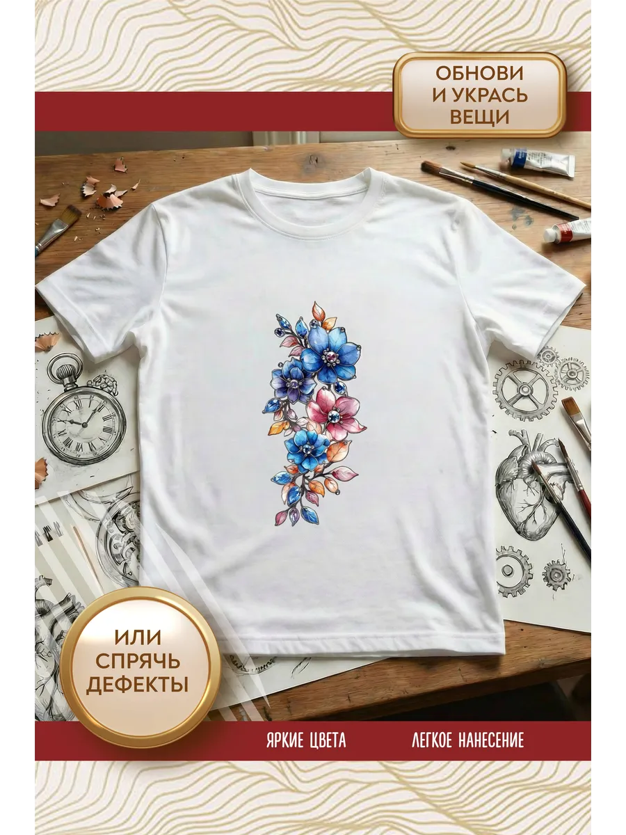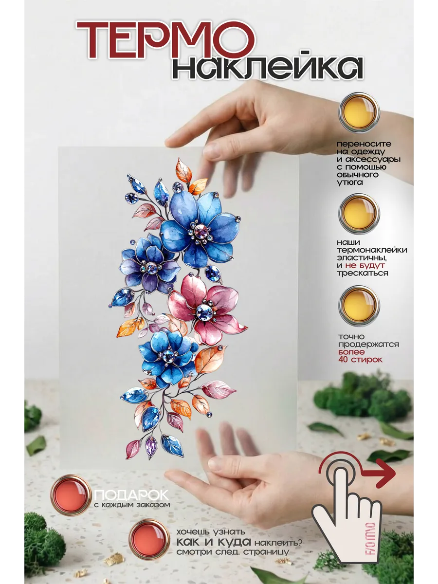 Термонаклейка на одежду, термопринт Цветок Стразы